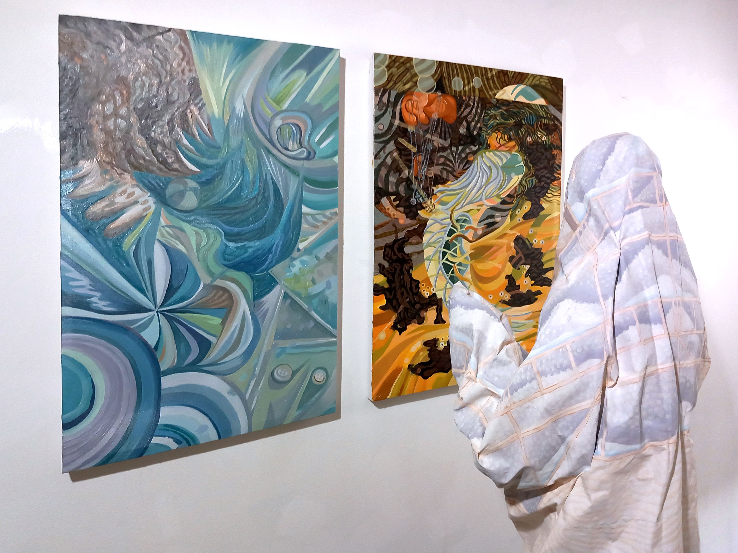 Esillä olevat teokset ovat valikoima vuonna 2021 alkaneesta laajemmasta samannimisestä, yhä kehittyvästä sarjasta. Kuten näyttelyn nimi kertoo, maalaussarja kartoittaa neljä tarinalankaa, jotka näyttelyssä järjestetään ja kudotaan uudelleen uusiksi tarinaketjuiksi. Teossarjassa kiinnitetään erityistä huomiota “visuaaliseen verkostoon” sekä yksittäisten maalausten sisällä, että koko kuvasarjassa. Toisin kuin tyypillisissä kuvituksissa, näiden maalausten tarinat ovat itseään synnyttäviä, ja kuvamotiivit, hahmot ja maisemat muodostavat jatkuvasti uusia runollisia suhteita.
