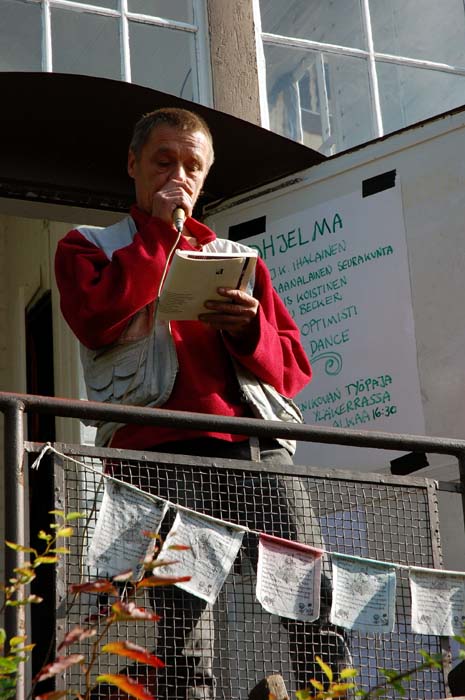 Kirjailija, kirjanpainaja, kääntäjä, kustantaja, hypnopoliitikko J.K.Ihalainen on tullut tunnetuksi monialaisesta osaamisestaan ja jatkuvasta liikkeessä olemisesta ja uudistumiskyvystään. Siitä esimerkkinä vaikkapa nuoren polven rap-artisti Asan uusimmalle soololevylle Loppuasukas levytetty kappale, jossa Ihalainen lausuu runonsa alkuasukas. Ihalaisen ilmaisu on tyyliltään loitsuavaa ja vahvasti sanallista.
